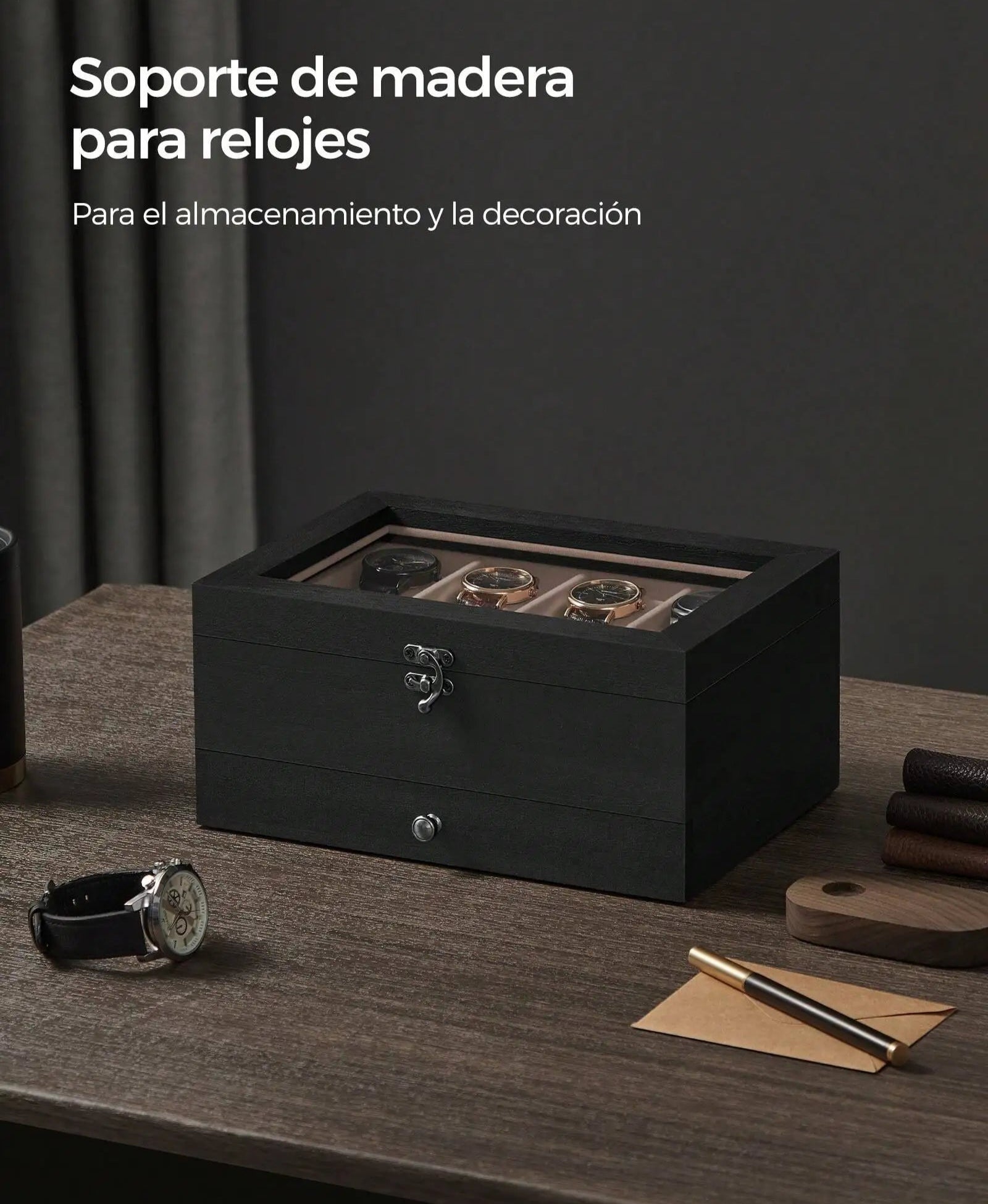 Large Glass Lid – Offers a clear view of your watches while keeping them dust-free. Easily find your favorite piece at a glance.